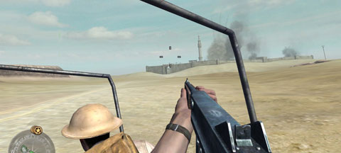 The demo is a quick slice of the British campaign in Egypt, specifically a mission to eliminate German artillery along the coast in El Daba in 1942. The demo is, unfortunately a woefully brief taste of something greater. However, it has left me thirsting for more, so in that sense, they’ve achieved their goal. The ironic thing about the demo is that it contains many of the elements the Infinity Ward specifically set out to change from the first Call of Duty: the heavy reliance on scripting, the linearity of the levels, and the not-so-tactical enemy A.I. Part of this is the setup of El Daba (narrow streets and entrenched enemy positions, close-quarters indoor combat, etc.), but if they wanted to blow me away with the new features, they fell a bit short. I had to actively look for them to notice how differently the enemies react. However, once you see it, you realize that in a less linear setup, the enemies will probably be much more engaging and challenging.