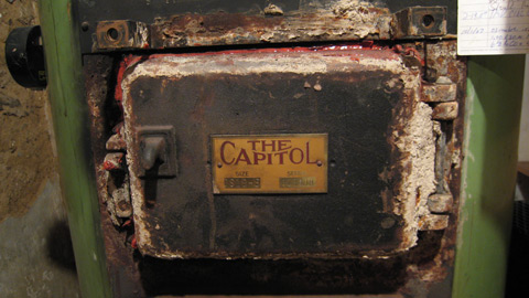 No one knew exactly how old the furnace was, but most people agreed that our estimate of 60 years old (based on its styling, which looked ’40s or so), was accurate, or at least reasonable. Here’s a large version so you can check out the details of that door.